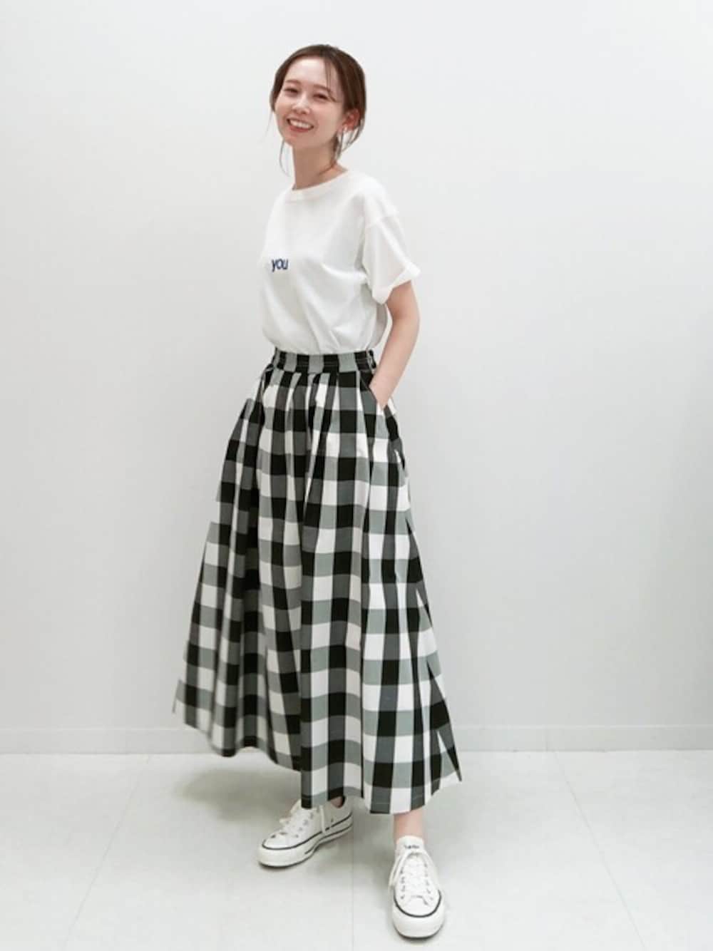 hareko(はれこ)のスカート「ギンガムチェックタフタランダムタックスカート【ウエストゴム/手洗い可能】◆」を使ったコーディネート