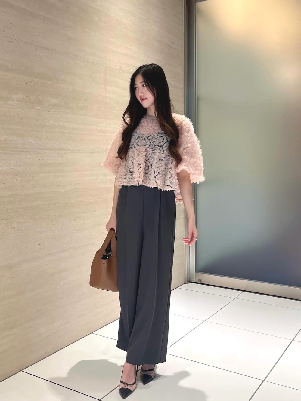まるで花びらを纏ったかのような「ペタルテクスチャー」が、視線を惹きつけるオールインワン。 トップス部分はふんわりと立体的な生地を重ね、繊細で優雅な表情を演出。 軽やかな透け感が上品なフェミニニティを漂わせます。 ボトムは落ち感のあるワイドシルエットで、歩くたびに美しいラインを描き、体型を美しくカバー。 一枚でドレスのような華やかさを持ちながら、パンツスタイルならではの動きやすさも兼ね備えています。 結婚式、パーティー、アフタヌーンティーなど、特別な一日を優雅に彩る、大人の女性のための一着です。 トップスを変えて普段使いにも◎
