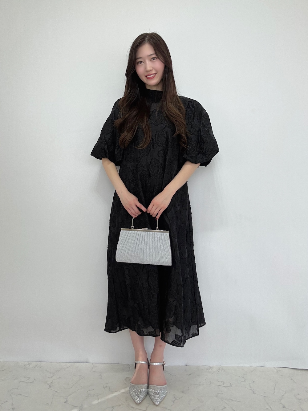 haremode(haremode)のクラッチバッグ「メタルハンドルラメプリーツパーティーバッグ」を使ったコーディネート