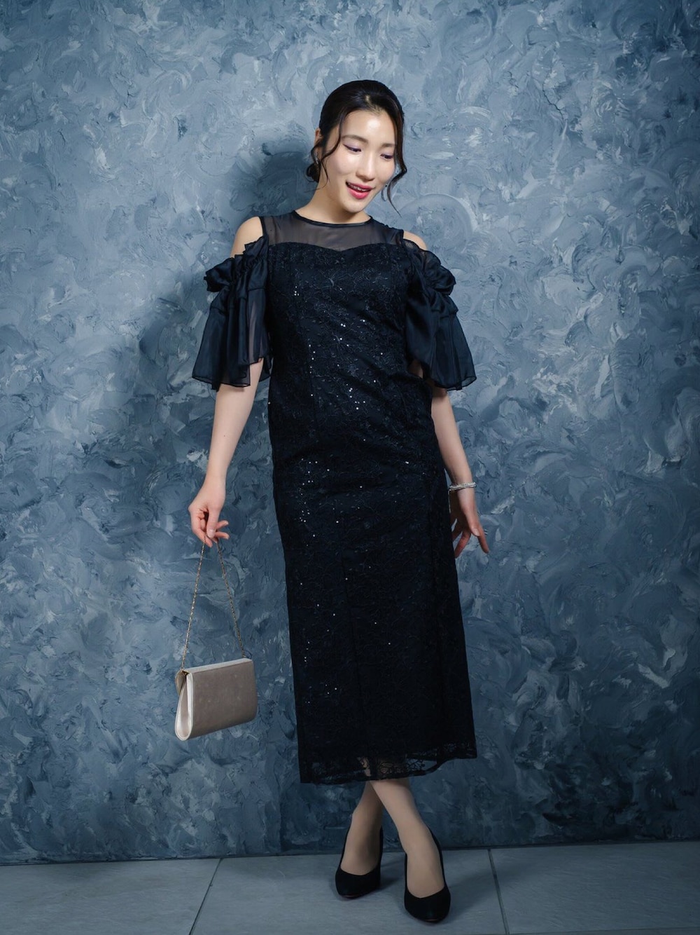 haremode(haremode)のドレス「結婚式 お呼ばれ 二次会 謝恩会 成人式 同窓会 対応 20代 30代 ブロッサム チュール シアー 肩あき フリル袖 Iライン きれいめ セレモニー パーティ オケージョン ドレス」を使ったコーディネート