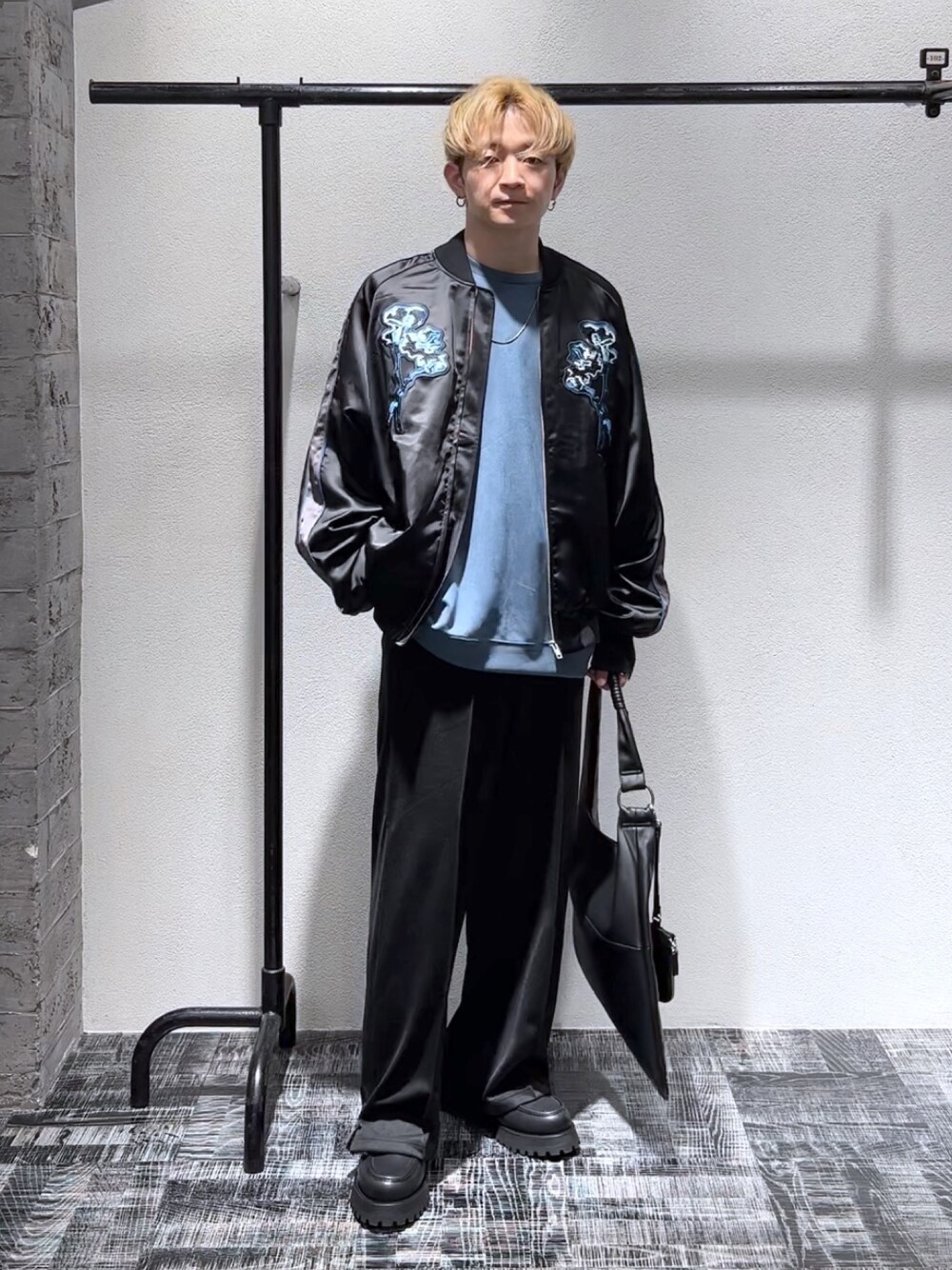 ブラックとブルーのツートーンコーデ! HAREのスカジャンはキレイ目な雰囲気! 誰でも挑戦しやすいデザインです! フラワーのデザインもオリジナルなので被らないです! 【 staffboard & Instagram 毎日更新中!!】Instagram(@mrti_0130)で プライベートやリール動画も配信してます! そちらもフォローお待ちしてます