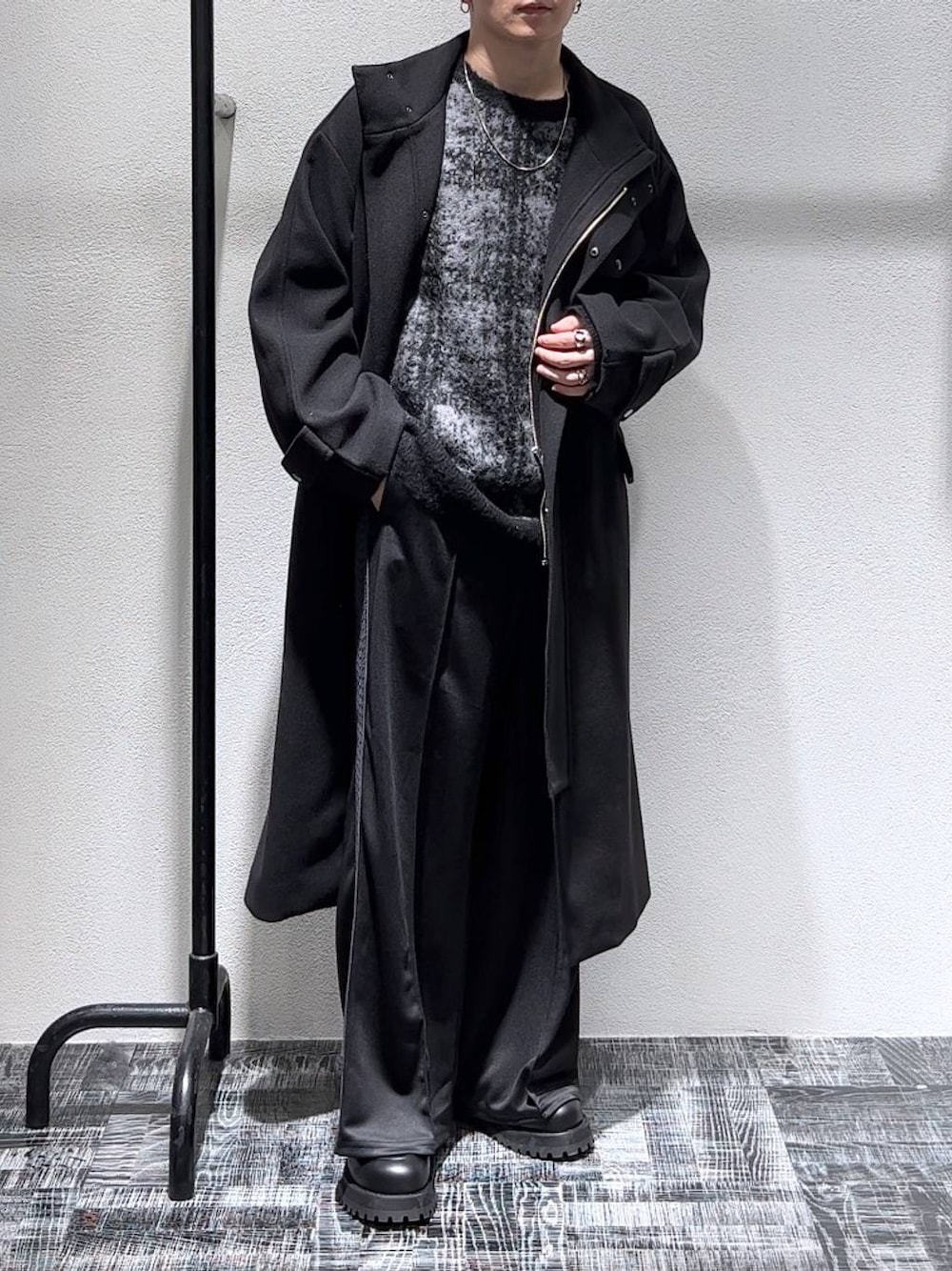 【オールブラック×柄ニットでモードに】 ◇コートはウーリーテックを使用したモーターサイクルコート! コートでもカジュアルなデザインで、程よく抜け感があります! カジュアなデニムやカーゴパンツなどとも相性が良いですよ! パンツはHAREらしいキレイでモードなラインパンツ! 生地の表面が光沢がありツルッとしています! オールシーズン使えるアイテムでたくさん活躍します! ウエストもゴムなので履き心地も◎! 【 staffboard & Instagram 毎日更新中!!】Instagram(@mrti_0130)で プライベートやリール動画も配信してます! そちらもフォローお待ちしてます!
