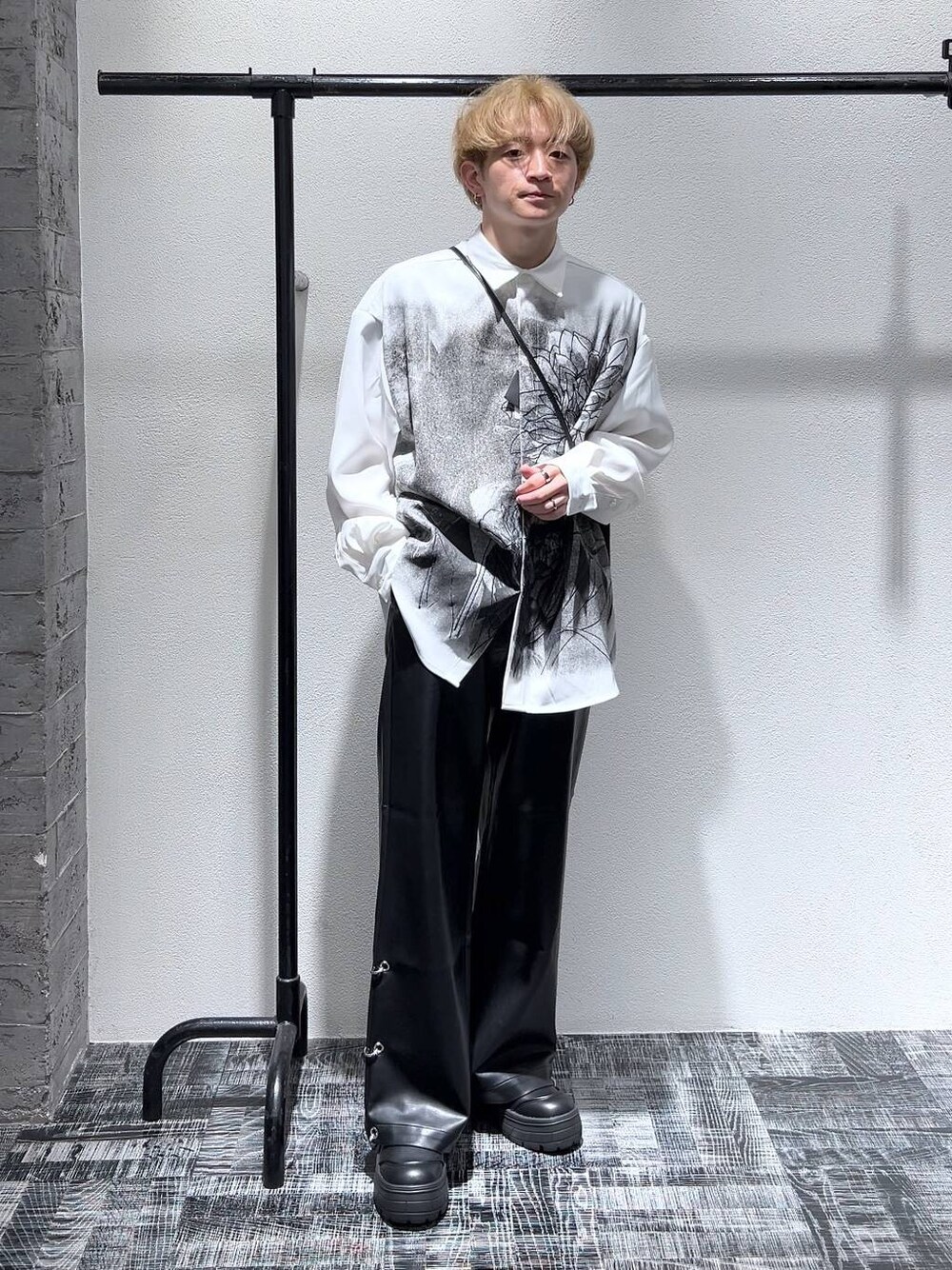 【 staffboard & Instagram 毎日更新中!!】Instagram(@mrti_0130)で プライベートやリール動画も配信してます! そちらもフォローお待ちしてます! ◇シャツ 柔らかく落ち感のある生地! ドレープ感があり、服の揺れ感がとても綺麗です! プリントと刺繍のデザインがミックスされている他にはないデザイン! オールシーズン着用できるアイテムです!! インナーでも、一枚で着ても◎!! ◇パンツ 裾にピアスがついたモードなワイドパンツ! 程よい太さなので、オーバーサイズのトップスと合わせてもダボっとし過ぎない! 柔らかいフェイクレザーなので着心地も◎! 裾のデザインはコーデの邪魔をしないので、柄物と合わせたり、カラーアイテムとも合わせられます!