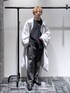 全角度の写真と動画も見れます! 顔ありと、顔なしも載せているのでスワイプして見てください🙌 【 staffboard & Instagram 毎日更新中!!】Instagram(@mrti_0130)で プライベートやリール動画も配信してます! そちらもフォローお待ちしてます! ◇コート 柔らかい落ち感のある生地! ドレープ感があるので揺れ感がとても綺麗です! 夏以外ずっと使える生地で、たくさんの季節で活躍します! 袖を絞ったり、スタンドカラーとして着れたりとこれ1着で着回しがたくさんできます! オーバーサイズでゆったりと着れるサイズ感です! ◇パンツ スッキリとしたストレートシルエット! 足が細く、スタイル良く見えるパンツ! フェイクレザーの生地で風を通さないので、夏以外のシーズンで使えますよ! 裾にはジップがついており、フレアパンツとしても履けます! モードな着こなしが好きた方に!!
