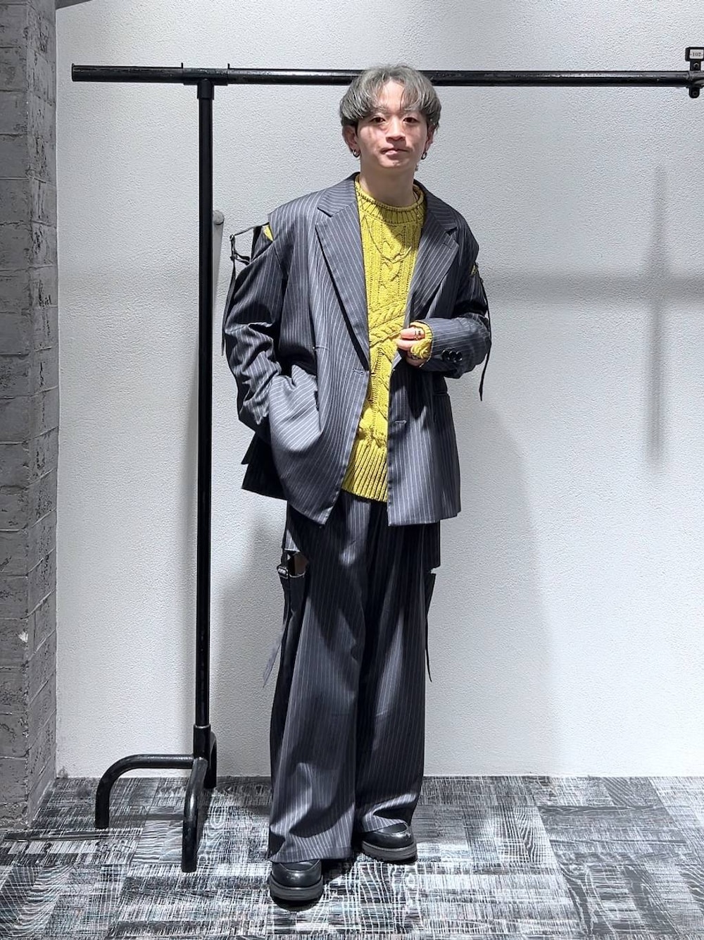 全角度の写真と動画も見れます! 顔ありと、顔なしも載せているのでスワイプして見てください🙌 【 staffboard & Instagram 毎日更新中!!】Instagram(@mrti_0130)で プライベートやリール動画も配信してます! そちらもフォローお待ちしてます! ◇セットアップ カットアウトデザインが特徴的なジャケット! 他にないデザインがモードでスタイリッシュ! 周りと被りたくない自分からすると、こういう他にないデザインはとてもありがたい! ジャケットは裏地がついていますが軽い着心地! 春先はもちろん、中を半袖のTシャツなどで合わせても◎! オーバーサイズなので袖を通してやすく、軽く羽織りやすいのも良い! パンツはデニムやカーゴパンツなどカジュアルなものと合わせてもカッコ良いのでオススメ!! パンツはワイドストレートのシルエット! 太過ぎないので合わせやすく、コーデに取り入れやすい! チラッと肌が少し見える感じもカッコ良い! 生地の厚みも程よく、シーズンを通して着やすいですよ! 薄いストライプが入っているので、無地のシンプルなトップスと合わせてもこれを羽織るだけでオシャレ見えします!