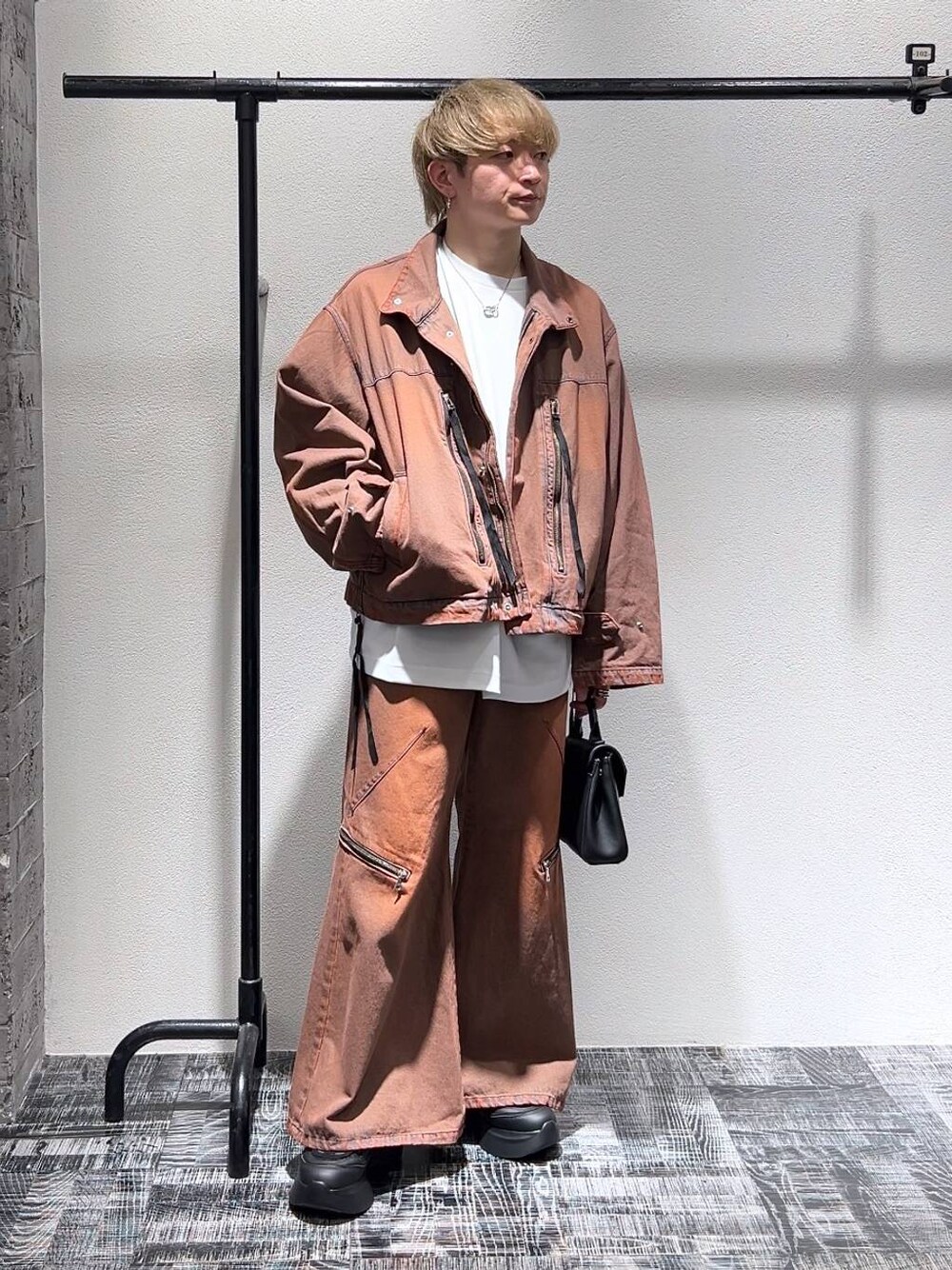 全角度の写真と動画も見れます! 載せているのでスワイプして見てください🙌 【 staffboard & Instagram 毎日更新中!!】Instagram(@mrti_0130)で プライベートやリール動画も配信してます! そちらもフォローお待ちしてます! ◇ジャケット 168cmでフリーサイズを着用! オーバーサイズでゆるっと着れます! 丈に関しては短めで腰ぐらいの長さ!袖は手が隠れるぐらいです! スッキリと着れます! 生地は程よい厚さになっていて、インナー次第でオールシーズン使えます! ◇パンツ 168cmでSサイズを着用! 丈は靴にかかるぐらいの長さになっています! ワイドフレアのシルエットで、スタイルアップできます! こちらも生地は程よい厚さなので、オールシーズン使える! 色味が特徴的で、他にはない色! 派手にはならないので着やすいです!
