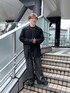 【低身長なのでスウェットはレザーパンツで上品に!】 スウェットは低身長だと幼くなってしまうので、他のアイテムはキレイでスタイリッシュなアイテムで合わせる! このレザーパンツのヴィンテージライクなカラーが可愛い! アウターもジャケットで合わせて、幼さを消す!