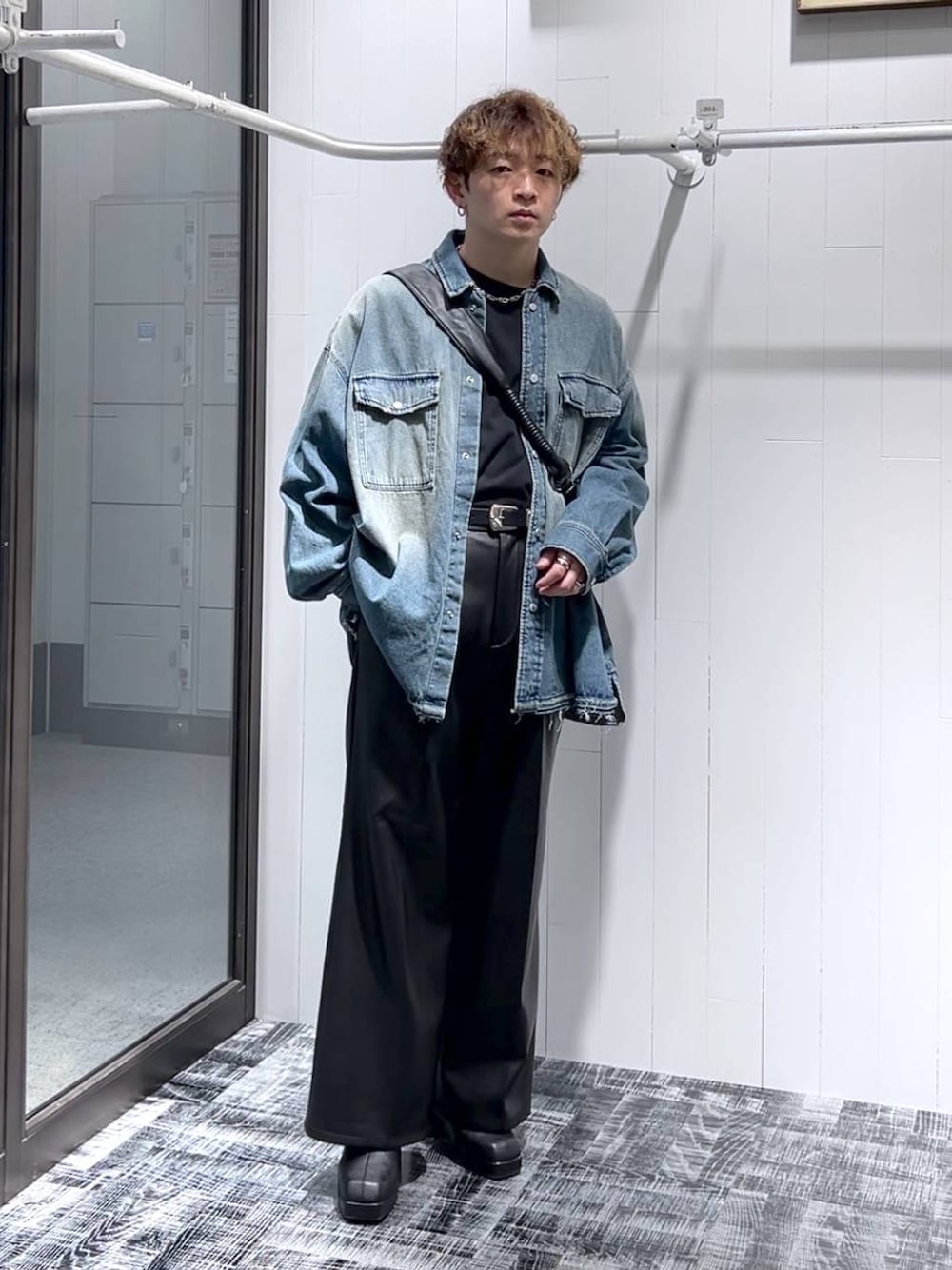 ▼デニムシャツ 薄手なデニムでシーズン通して着れるシャツ! カットオフのデザインがこなれ感がありかっこいい! サイズはオーバーサイズでゆったりと着れる! 軽いので、秋、春などシーズンを気にせず着やすい! 今年のカジュアルな雰囲気にもぴったり! ▼ワイドパンツ 上品かつキレイなレザーパンツ! ワイドストレートのシルエットなので着やすく、ダボっとし過ぎない! ウエストはゴムがあり、体型問わず着やすいです! 秋冬のずっと着ていけます!