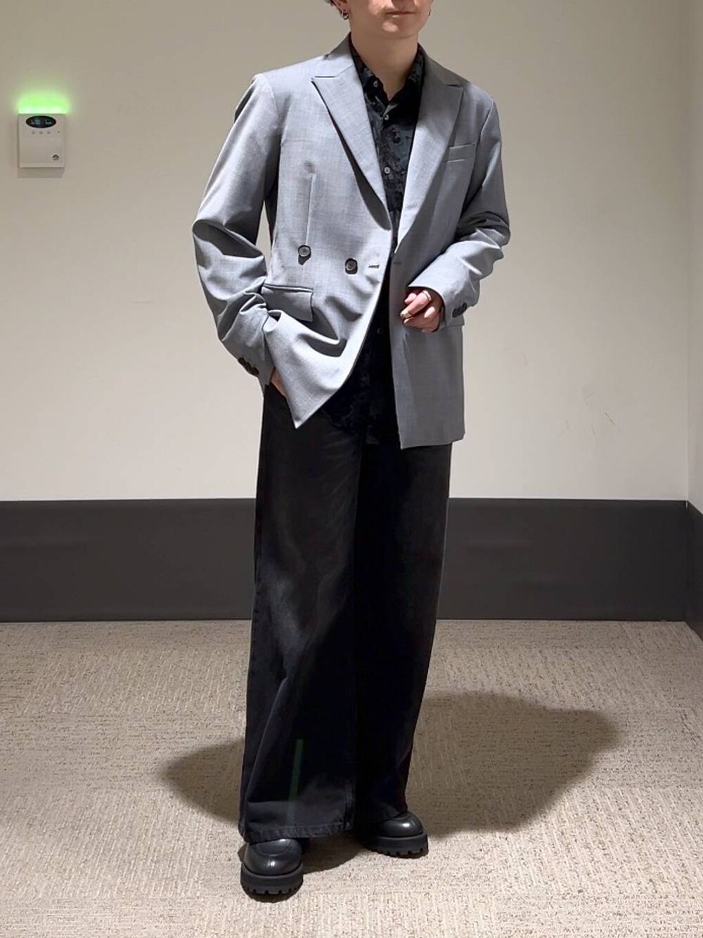 ▼ジャケット 肩パッドが入ったクールでモードなジャケット! サイズは少しゆとりのあるサイズで、ジャストサイズに近いです! 身幅が細く見えるので、スタイルがキレイに! バックにあるベルトによって、身幅を絞ることができシルエットを変えられます! 今年はデニムパンツと合わせるスタイルもおすすめです! ▼デニムパンツ ワイドフレアのシルエットでスタイルが盛れるデニムパンツ! 丈はフルレングスで靴にかかる長さ! ウォッシュ加工されたカラーが今年らしくかっこいい! 裾に向かって広がるシルエットで足が長く見えます! 生地の厚みも程よく、オールシーズン使えますよ!