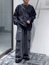 ▼ニット 抽象的な柄が使いやすく合わせやすいニット! サイズはオーバーサイズでゆったりと着ることができます! ドライタッチな生地になっており、軽い着心地! ニットでもチクチクしないので着やすいですよ! 一枚でもサマになるし、柄が強く無いのでインナーでも使いやすいです! ▼パンツ ダル着見えしないスウェットのカーゴパンツ! ウエストがゴムなので履き心地は◎! ボリュームのあるシルエットで存在感も抜群です! 生地も肉厚で、冬でも着やすいですよ!