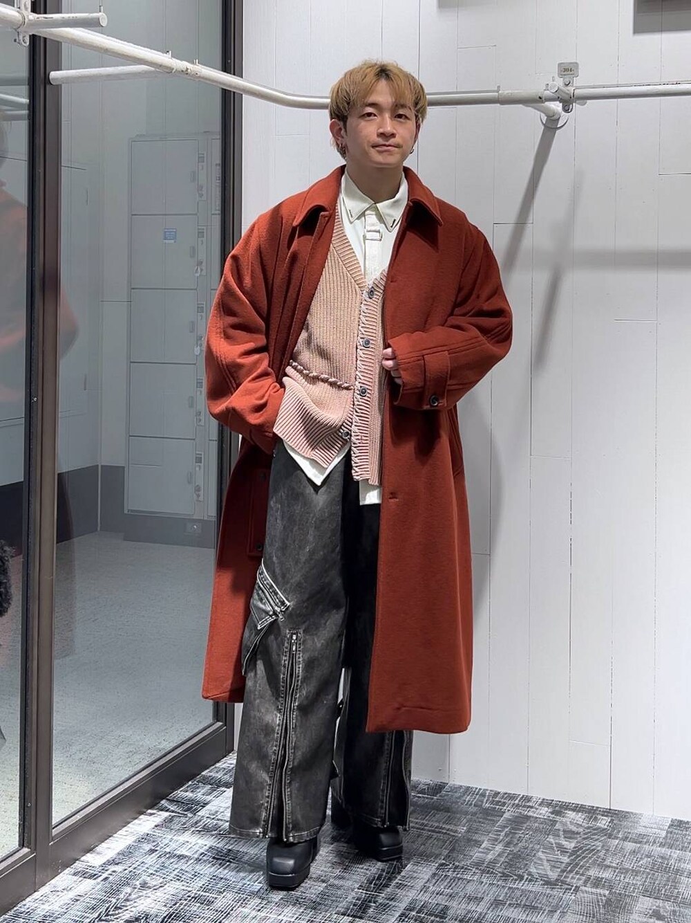 ▼コート ウールを使った冬でも暖かく過ごせるコート! サイズはオーバーサイズでゆったりと着れます! 中に着込むことができるので、気温に合わせて着やすいです! 新鮮なアウターが欲しい方におすすめです! デザインはベーシックなのでお持ちのアイテムとも合わせやすいです! ▼ワイドパンツ フェイクレザーを使ったモードなカーゴパンツ! 柔らかいレザーで履き心地も◎! 裾のジップによってシルエットを変えて着ることができます! 他にはないデザイン性の高いアイテムです!