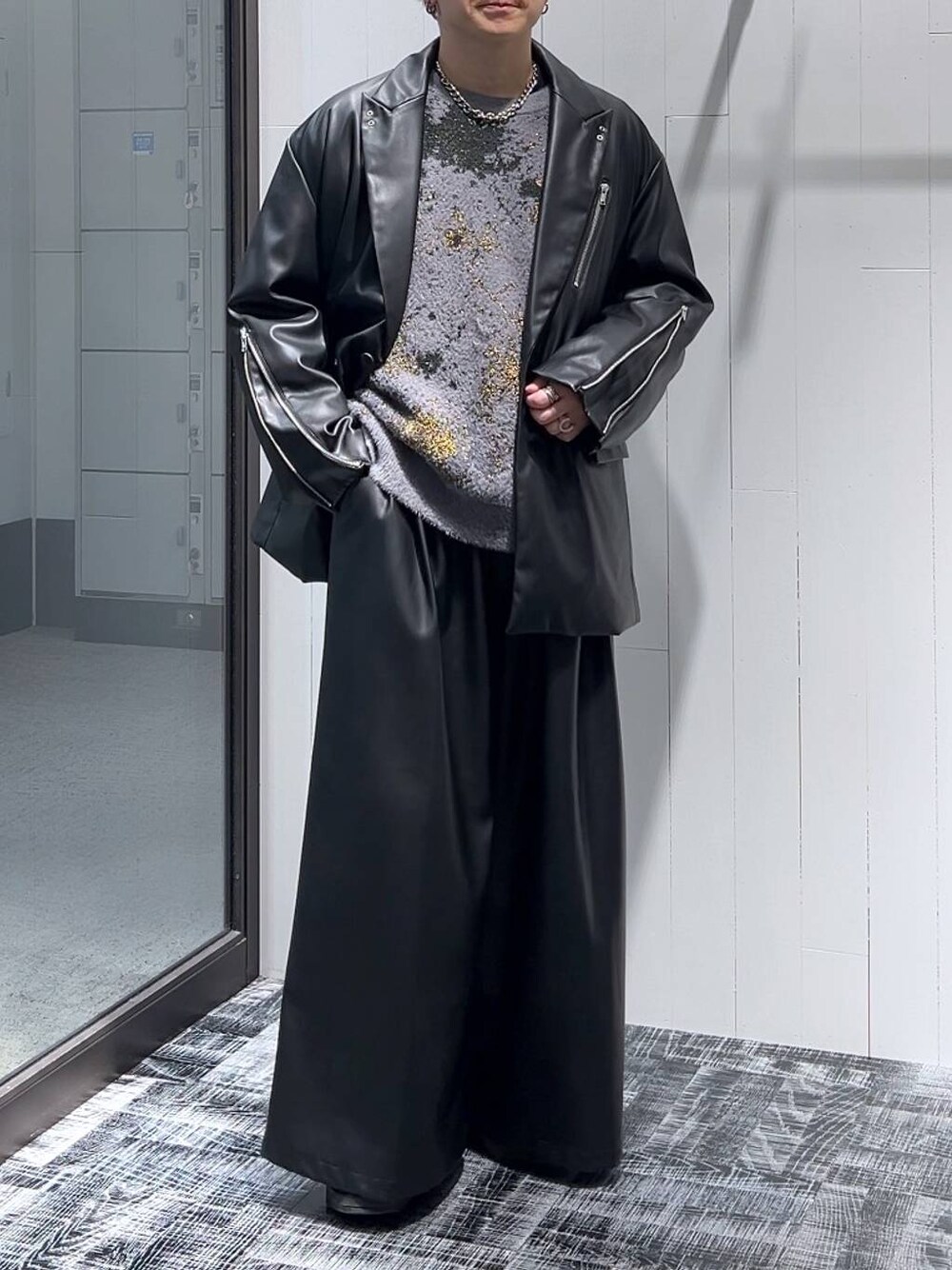 ▼ジャケット サイズはオーバーサイズでゆったりと着れるサイズ! 中にニットなどを着ても着膨れしないです! 柔らかいフェイクレザーの生地で着心地も◎! ジップデザインがモードかつスタイリッシュな雰囲気です! キレイ目なスタイルやモードなスタイルにぴったりです! ▼ニット サイズはオーバーサイズでゆったり目です! 柔らかいふわふわな生地で、着心地も◎! ラメをの光沢がとてもキレイで、HAREならではのデザインです! ユニセックスで着れるアイテムで、お揃いで着るのもオススメ!