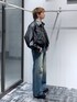 ▼レザージャケット 短丈ですっきりと着れるトレンド感のあるレザージャケット! フェイクレザーを使っており、柔らかさのある生地感! レザーでも着やすくて、ゴワゴワしないです! また、ベーシックなデザインなので着回しもしやすいですよ! ▼パンツ ワイドフレアのデニムパンツ! フレアシルエットなので脚長効果があるので低身長でもスタイルが盛れました! ウォッシュ加工されたカラーもかっこよく、上がシンプルでもサマになる! スタイルをキレイに見せたい方には特にお勧めしたい!!