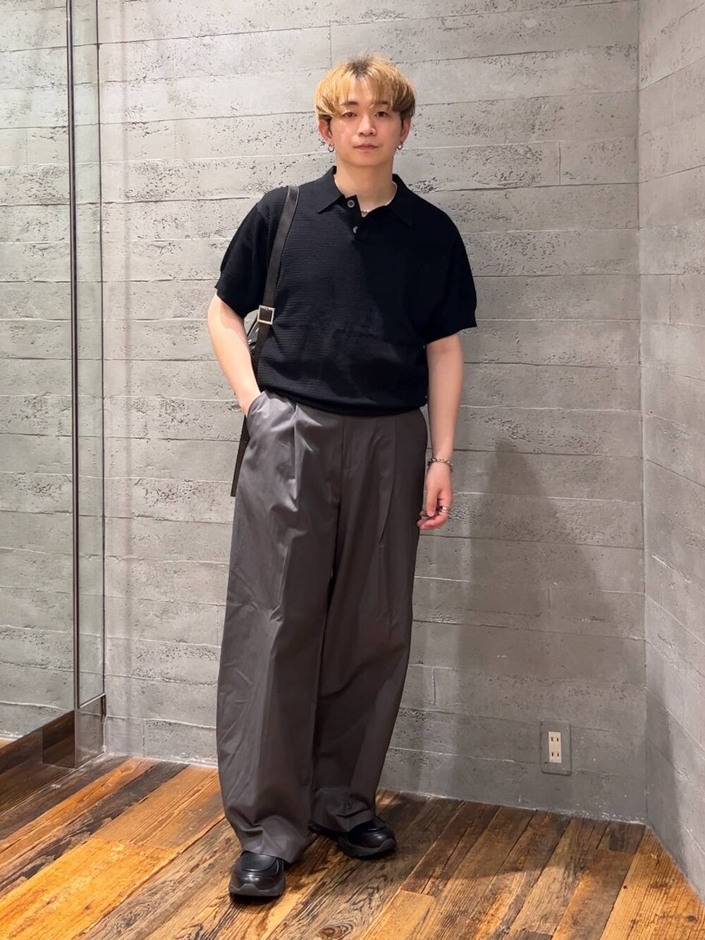 🔻ポロシャツ コンパクトなシルエットでスッキリと着ることのできるポロシャツ! 短丈なので足が長く見え、スッキリとした印象です! 伸縮性のある生地で着心地も抜群ですよ! ガタイが良い方は、ワンサイズあげるのがオススメです! 🔻パンツ ボリュームのある存在感抜群なワイドパンツ! 程よく光沢があるしっかりとした生地! オールシーズン使うことができ、たくさん使えるのが嬉しい! ウエストのサイドにベルトが付属しており、それを絞ることでベルトレスで使えますよ!