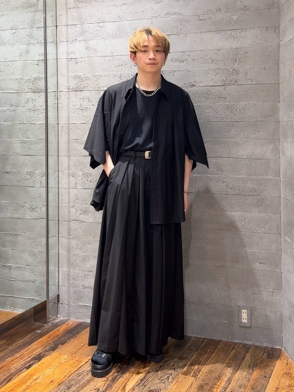 🔻シャツ HAREらしい和モードなデザインのシャツ! ポンチョのようなデザインで、身幅が広く、ゆったりとした印象! 身体のラインを気にせず着れるし、汗をかいてもべたつきづらいのも嬉しい! 前を閉めて一枚で着ても良いし、今回のように羽織って着るのも◎!! 🔻パンツ ボリュームのあるハカマパンツ! モード好きなら一個は持っておきたいパンツ! ウエストにはゴムが入っているので、体型問わず誰でも履きやすいです! プリーツデザインが足を長く見せてくれるので、スタイルアップにもつながるパンツです!