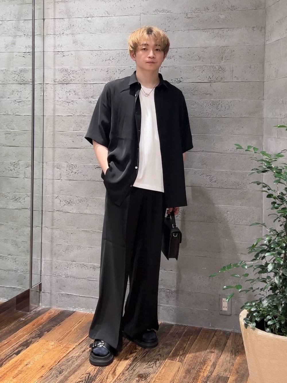 🔻シャツ 柔らかく、落ち感のあるトロミ素材を使ったシャツ! ベーシックなデザインでどんな服にもハマるデザインです! シワになりづらいので日頃から使いやすいのも嬉しいところ! サイズもゆったりと着れるので楽にオシャレ出来ます! 🔻パンツ ストンと落ちる中太のシルエットのワイドパンツ! センターにプレスも入っており、足長効果もあります! ウエストにはゴムがあり、体型問わず着れますよ! とりあえず着回しのできる服が欲しい! そんな方には特にオススメです!