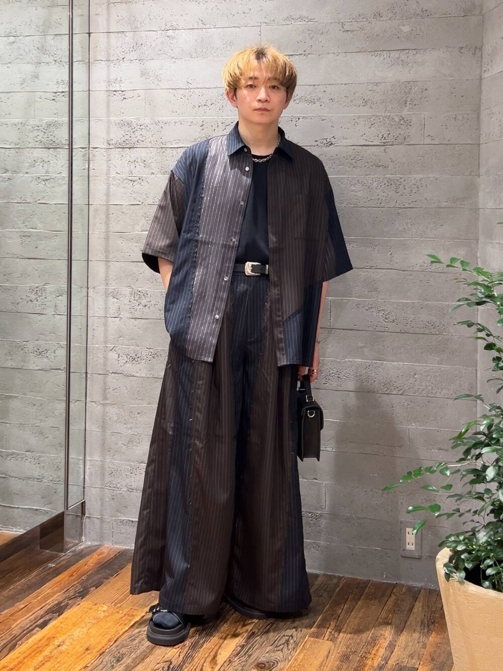🔻シャツ オーバーサイズでゆったりとしており、肩幅広めの自分でも身体のラインを気にせず着やすかったです! 袖の長さは肘ぐらいまであり、安心感がありますよ! 程よくしっかり目の生地で、汗染みなども出づらいですよ! 切り替えデザインが他になく、コーデを差別化できますよ! 🔻パンツ ボリュームのあるワイドシルエットで広めのデザイン! 存在が抜群で、トップスはシンプルでも◎! セットアップで着用すれば、楽に差別化できる上級者のオシャレができます!
