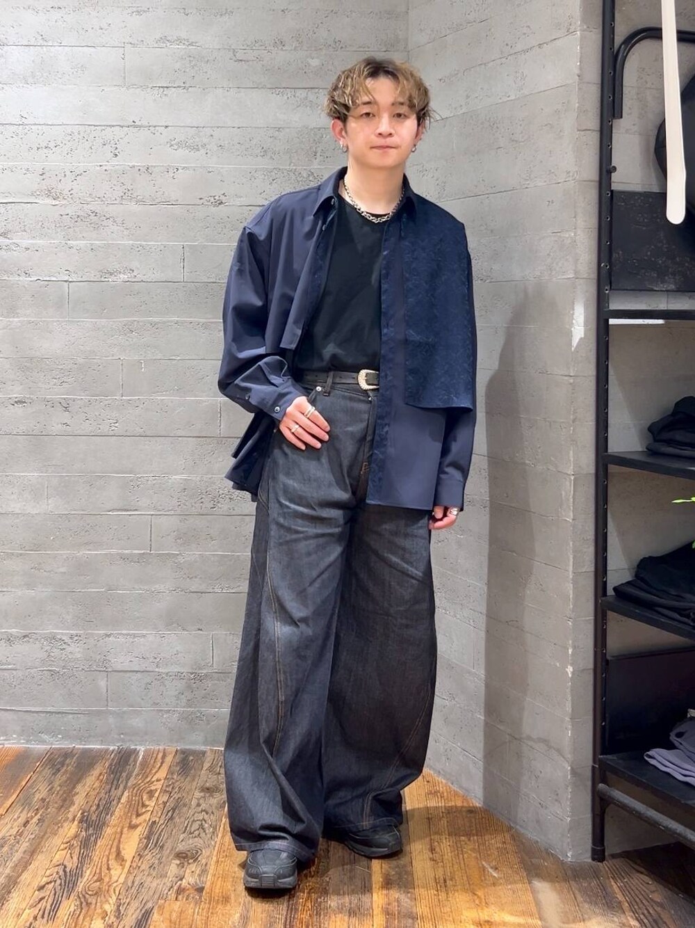 ▼シャツ レディライクなデザインのシャツ! ジャガードデザインと、フラシデザインがスタイリッシュな雰囲気です! 光沢のある上品な生地で、すごく高見えします! オーバーサイズなので、ゆったりと着ることもできます! 柔らかい生地なので、日頃から使いやすいのも嬉しいです! ▼パンツ カーブシルエットのデニムパンツ! リジット加工をしており、履き込むほど馴染みます! 育てがいもあるデニムパンツです! ウエスト周りはスッキリとしているので ワイドデニムでもだぼっと見え過ぎないです!