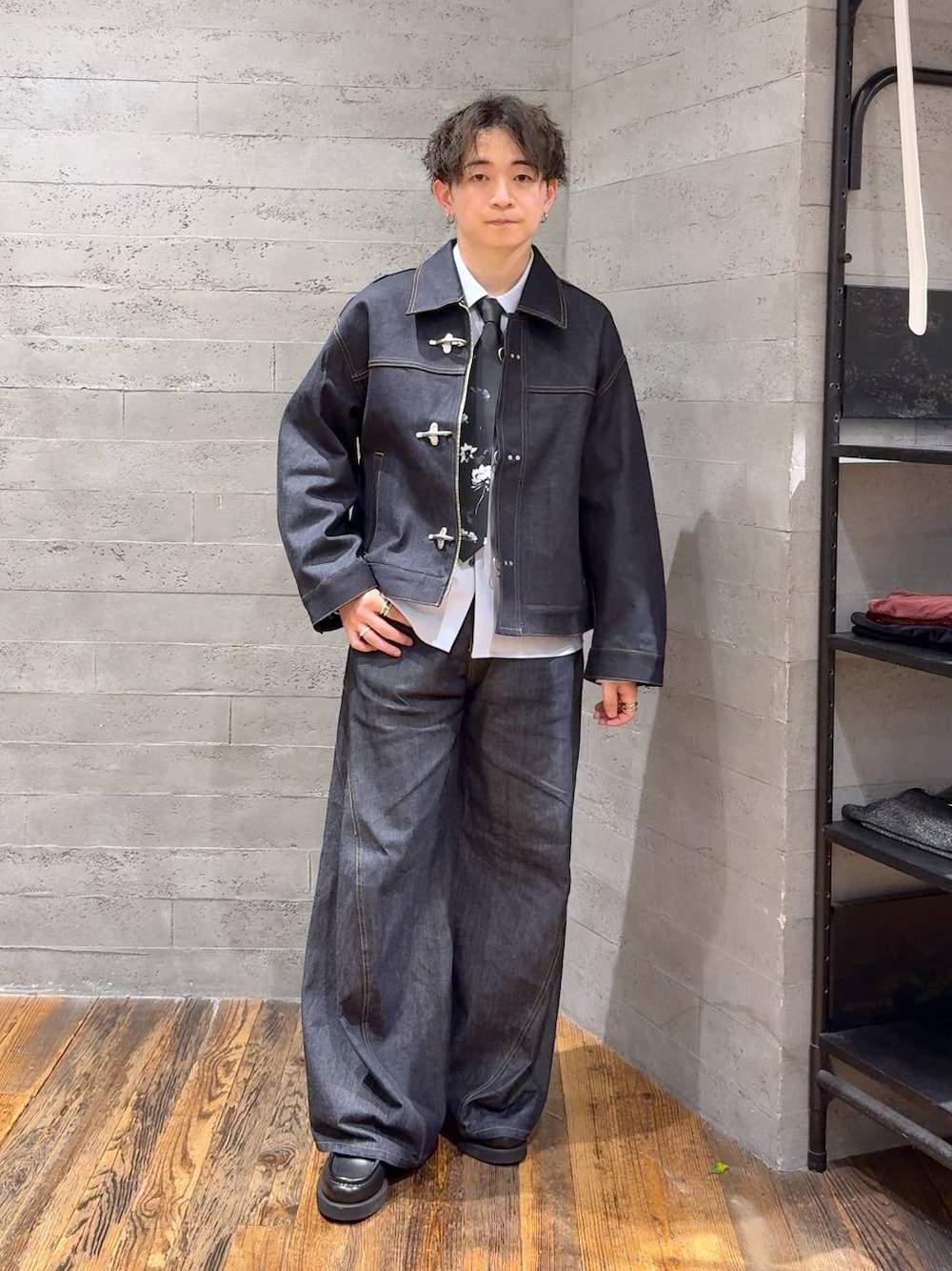▼デニムジャケット フロントはファイヤーマンバックル×ZIPの二重構造。 開け方次第で見え方を変えられるのが面白いポイント🔥 短丈で身幅広めのシルエットだからインナーを選ばず羽織れて、冬はコートの中にも着込みやすいです。 袖や裾をボタンで絞ればさらにコンパクトな見え方に◎ 素材はハリのあるデニムでシルエットしっかり。 ブルー系その他87はリジットデニム仕様で、履き込むほどに馴染んで育つ楽しみも🙌 ▼シャツ ブルー系その他83は無地のベーシックカラーで汎用性◎ 肩を落としたゆったりシルエットだけど、だらしなく見えない絶妙バランス。 程よいオーバーサイズで、一枚でも羽織りでも使える万能アイテムです🙌 生地はポリ×レーヨンのTR素材。上品な見え方なのに、吸水速乾・防シワ機能付きで肌触りも抜群! ラクなのに高見えするのが嬉しいポイント✨