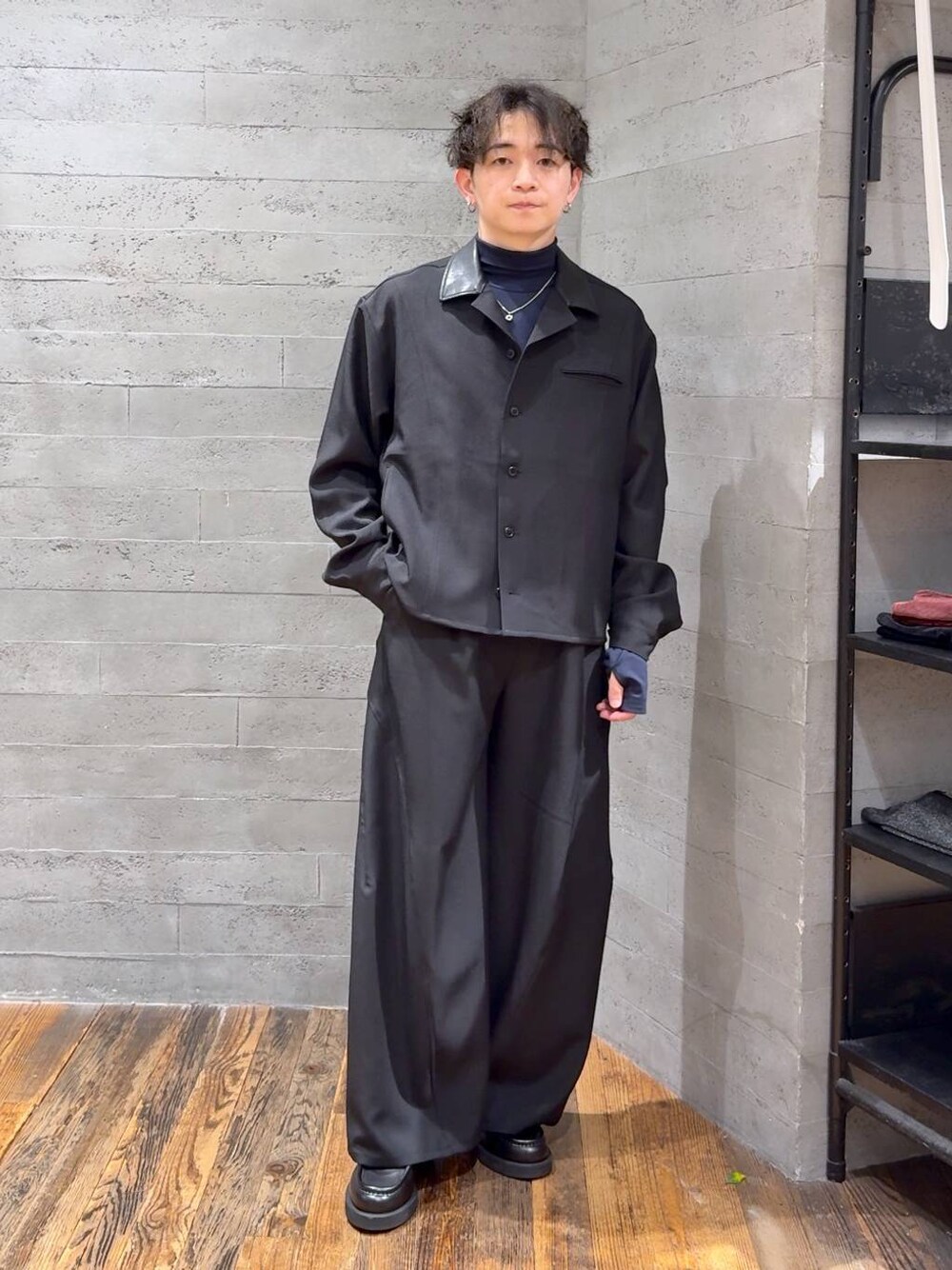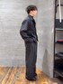 ▼シャツ 襟をレザーで切り替えたモード感あるシャツ。ライン状のステッチが立体感を出してくれるので、シンプルだけど一枚でサマになるデザインです。身幅ゆったり&袖にボリュームがあり、袖口のベルトでブルゾンっぽく着られるのもポイント。軽くてシワになりにくい素材で、気軽に羽織れて上品見え◎ ▼パンツ 立体裁断で膝下にボリュームを出したワイドパンツ。裾に広がるシルエットが脚を長く見せ、コンパクトなトップスと合わせればAラインでより綺麗に◎ 無地からストライプまで幅広い展開で使いやすく、シワになりにくくストレッチ性もある素材で快適に履けます。