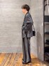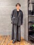 ▼ジャケット 2枚のジャケットを再構築したような、カットオフデザインが目を惹く個性派ジャケット。 つなぎ合わせ部分のラフな仕上げが程よく抜け感を出してくれて、羽織るだけで他と差がつくデザインです。 細めのストライプ柄が使われているので、個性的ながらも上品にまとまって見えるのがポイント。 身幅は広めで、ザックリとラフに羽織れるシルエット。Tシャツからタートルネックまで幅広く合わせやすいです。 素材はハリと落ち感のバランスが良く、シルエットをしっかりキープ。シワになりにくいのも嬉しいところ。 糸があえて垂れたカットオフ仕様が、デザインの味として活きています。 ✔︎ 他と被らないデザインジャケット ✔︎ ラフに羽織るだけで雰囲気が出る ✔︎ 手入れしやすく、デイリーにも◎ ▼パンツ 2本のパンツを解体して再構築したような、遊び心あふれるデザインが魅力の1本。 カットオフでつなぎ合わせた独特のラインがアクセントになっていて、ヴィンテージライクな雰囲気がしっかり感じられます。 細めのストライプ柄を採用しているので、デザイン性が高いのに上品さもキープ。カジュアルにもモードにも振れる万能さがあります。 ワイドフレアシルエットでリラックス感がありつつも、ルーズになりすぎず綺麗に見えるバランス感が◎ 素材は程よい落ち感とハリ感があり、立体的なシルエットをキープ。 シワになりにくいので、扱いやすくデイリーにもぴったりです。 ✔︎ デザイン性×上品さを両立 ✔︎ 履くだけでこなれ感が出る ✔︎ シルエットが綺麗で、低身長さんにもおすすめ
