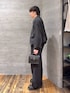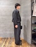 ▼ブルゾン 襟の合成皮革が程よいアクセントになっていて、 シンプルだけどしっかりモード感が出ます。 全体はゆとりのあるシルエットで、 ラフに羽織ってもサマになるのが◎ インナーも選ばず使いやすいです。 異素材切り替えで奥行きが出るので、 カジュアルにもモードにもハマります。 ▼パンツ 履いた瞬間、膝下のボリューム感がかなり印象的。 立体裁断のおかげでワイドでもダボつかず、 自然とモードな雰囲気になります。 トップスをコンパクトにすると、 一気に今っぽいバランスに。 ハリのある素材でシルエットがしっかり出るのも◎