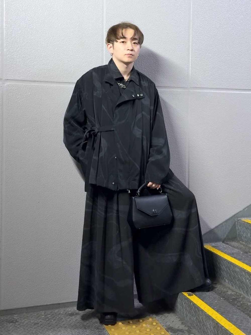 ▼パンツ 履いてみてまず思ったのは、 「これ、思ったよりいけるやん。」ってこと。笑 袴みたいなシルエットって聞くとちょっと構えちゃうけど、実際履くとタックのおかげで縦ラインが強調されるから、意外とスッと見える。 ウエストの紐を結ぶと一気に和モード感出るし、外してシンプルに履いても◎ 気分で雰囲気変えられるのも嬉しいポイント。 生地も落ち感があって広がりすぎないから、 「ワイド苦手かも…」って人にも一回試してほしい一本です。 ちょっとクセあるけど、ちゃんと使える。 そんなパンツでした。 ▼ジャケット 正直、最初は 「ちょっと攻めすぎかな?」って思いました。 でも着てみたら、意外とハマる。 スタンドネックでかなりミニマルなんですけど、あの長めのコードが歩くたびに揺れてくれて、ちゃんと“雰囲気”出ます。 静止してるより、動いたときがカッコいいタイプ。 ブラックはシンプルに使いやすいし、 グレーの柄はちょっと色気ある感じ。 自分みたいに普段シンプル多めな人が、ちょい足しでモードに振れるアイテムだなって思いました。 生地もスーツっぽい上品な落ち感があって、着心地は意外とラク。 「強そう」に見えるのに、着てる本人はわりと快適です。笑