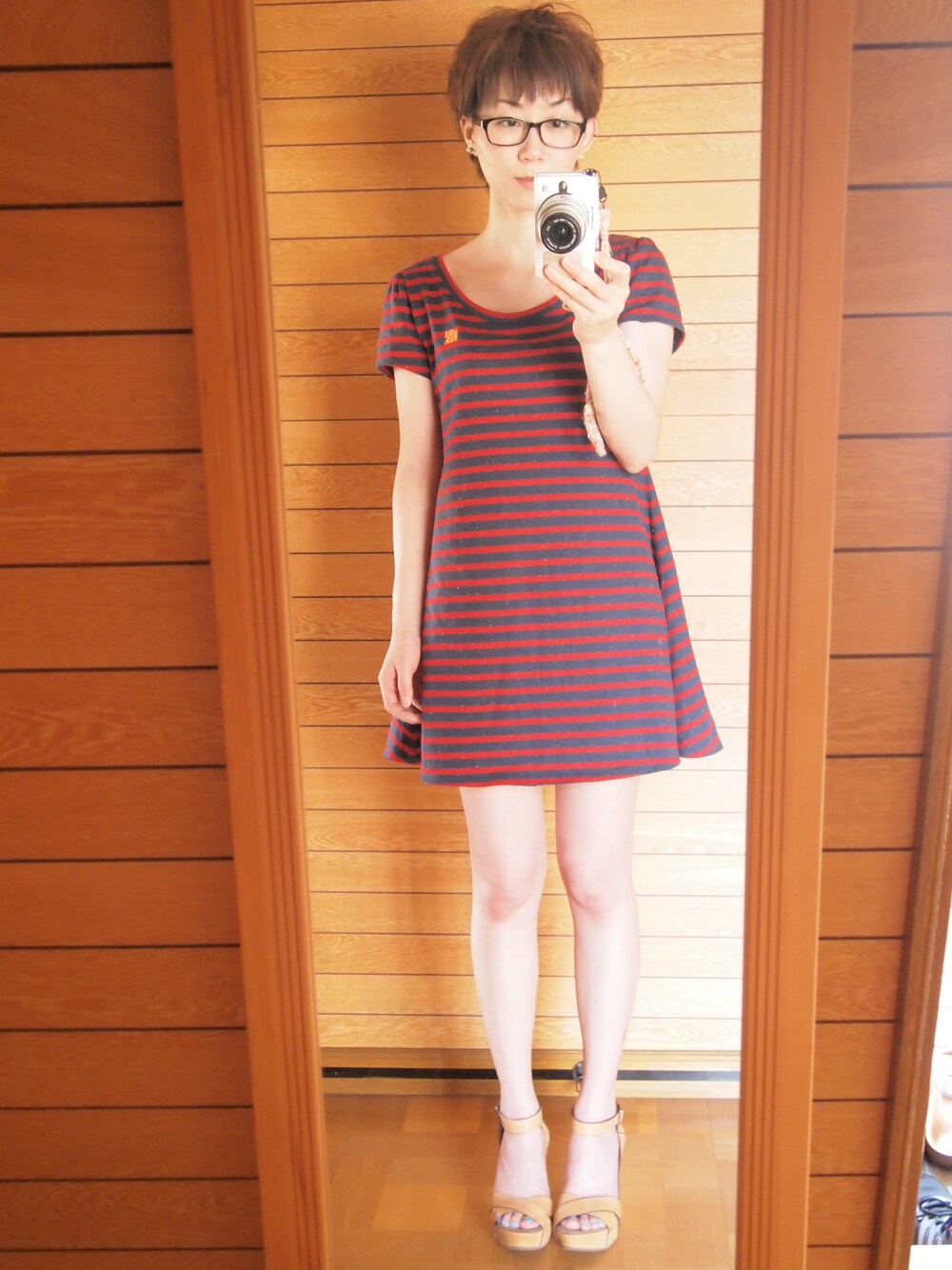 晴れのちのワンピース「STRIPED DOLLY DRESS」を使ったコーディネート