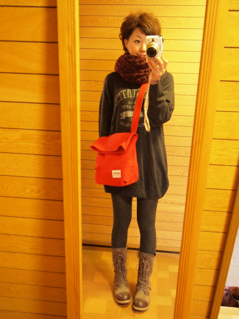 カバンが赤で、ブーツがカーキ。 メリークリスマース♡