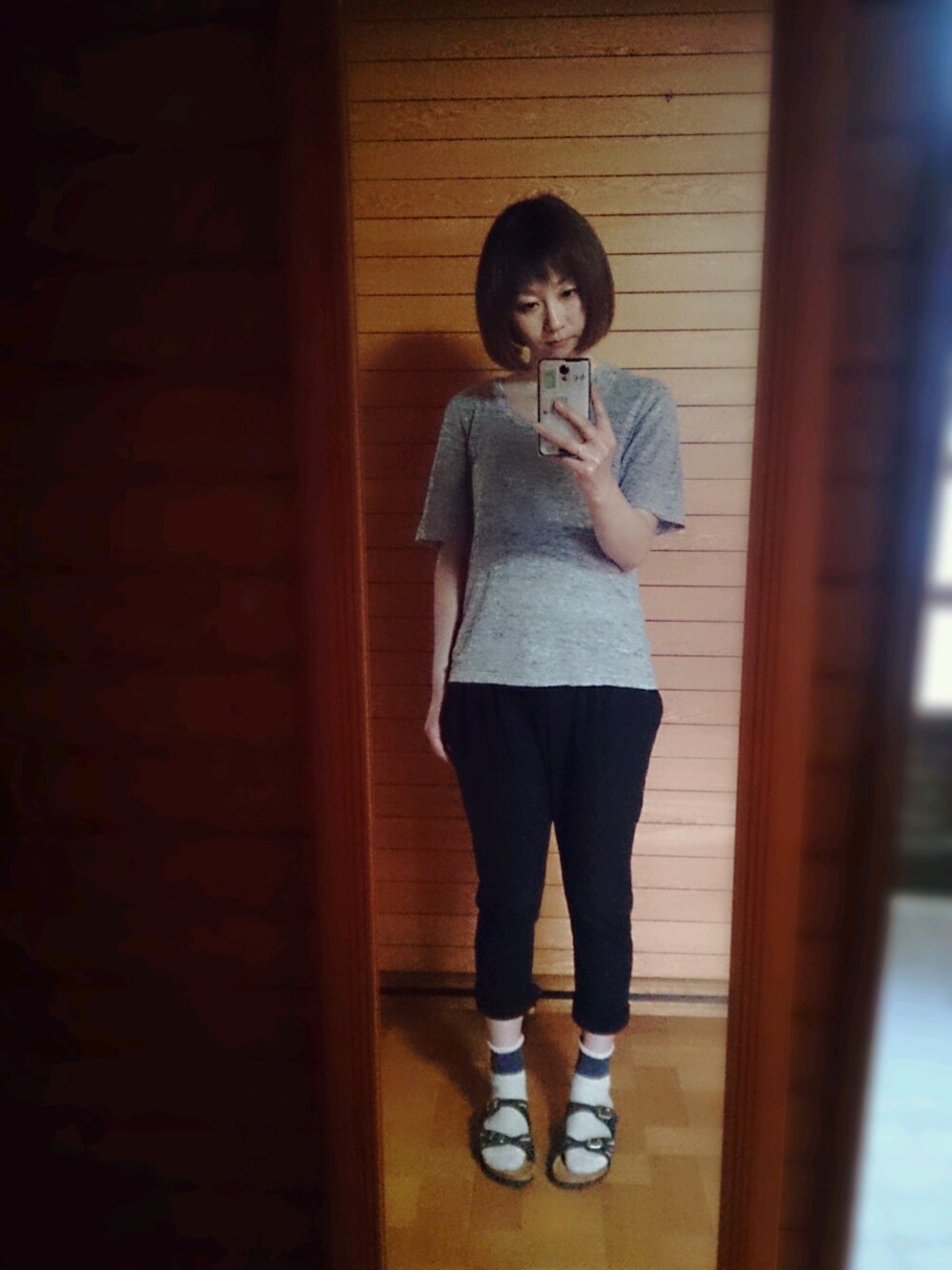 晴れのちのTシャツ/カットソー「リネン天竺 Vネックプルオーバー」を使ったコーディネート