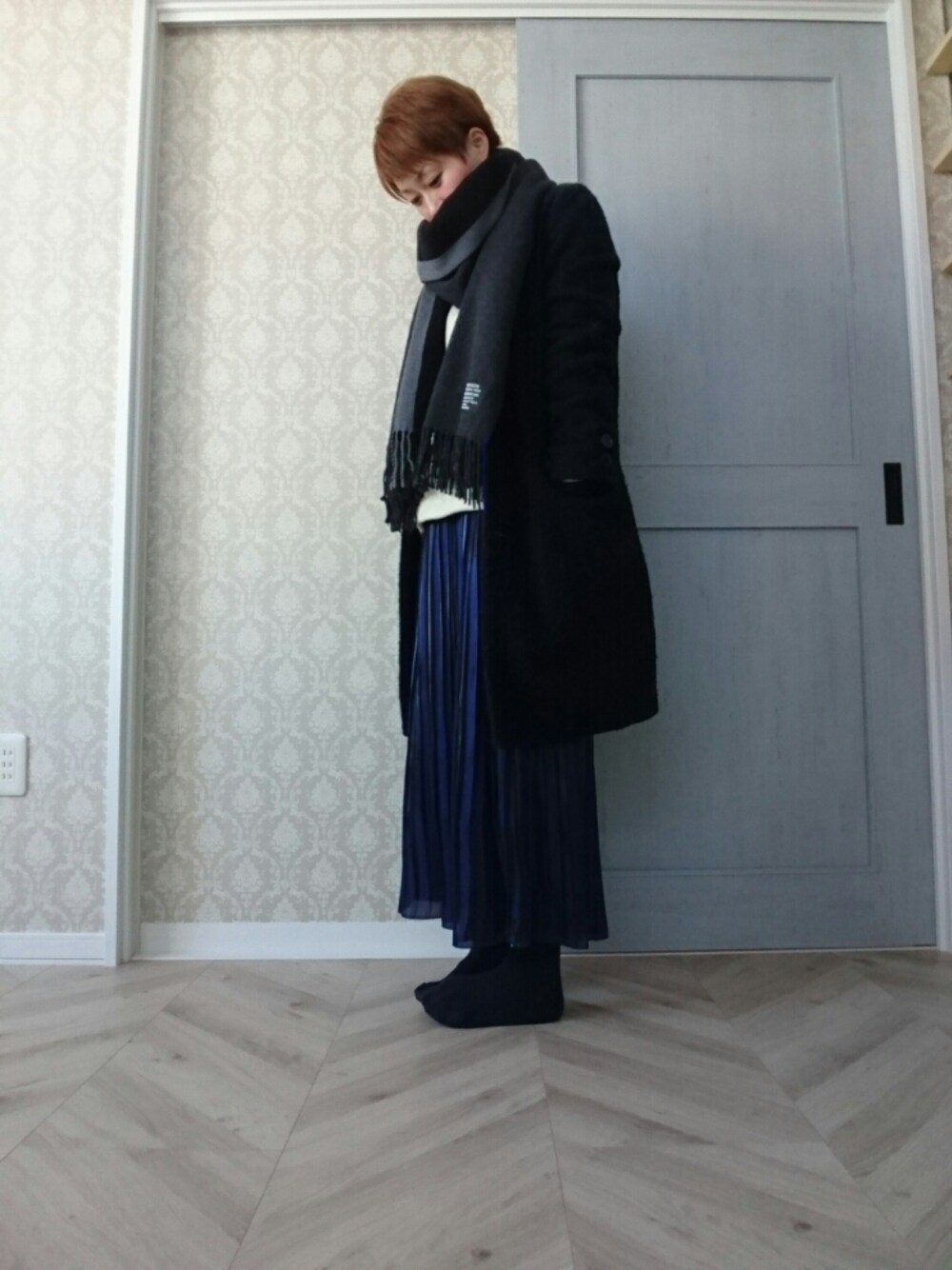 ストールが やわやわで暖かで 着ければ即座に極楽浄土。 ストール巻くとき 髪が邪魔にならなくて ショートヘアって すごく良いけど、 首とか頭とか すごく寒い。笑