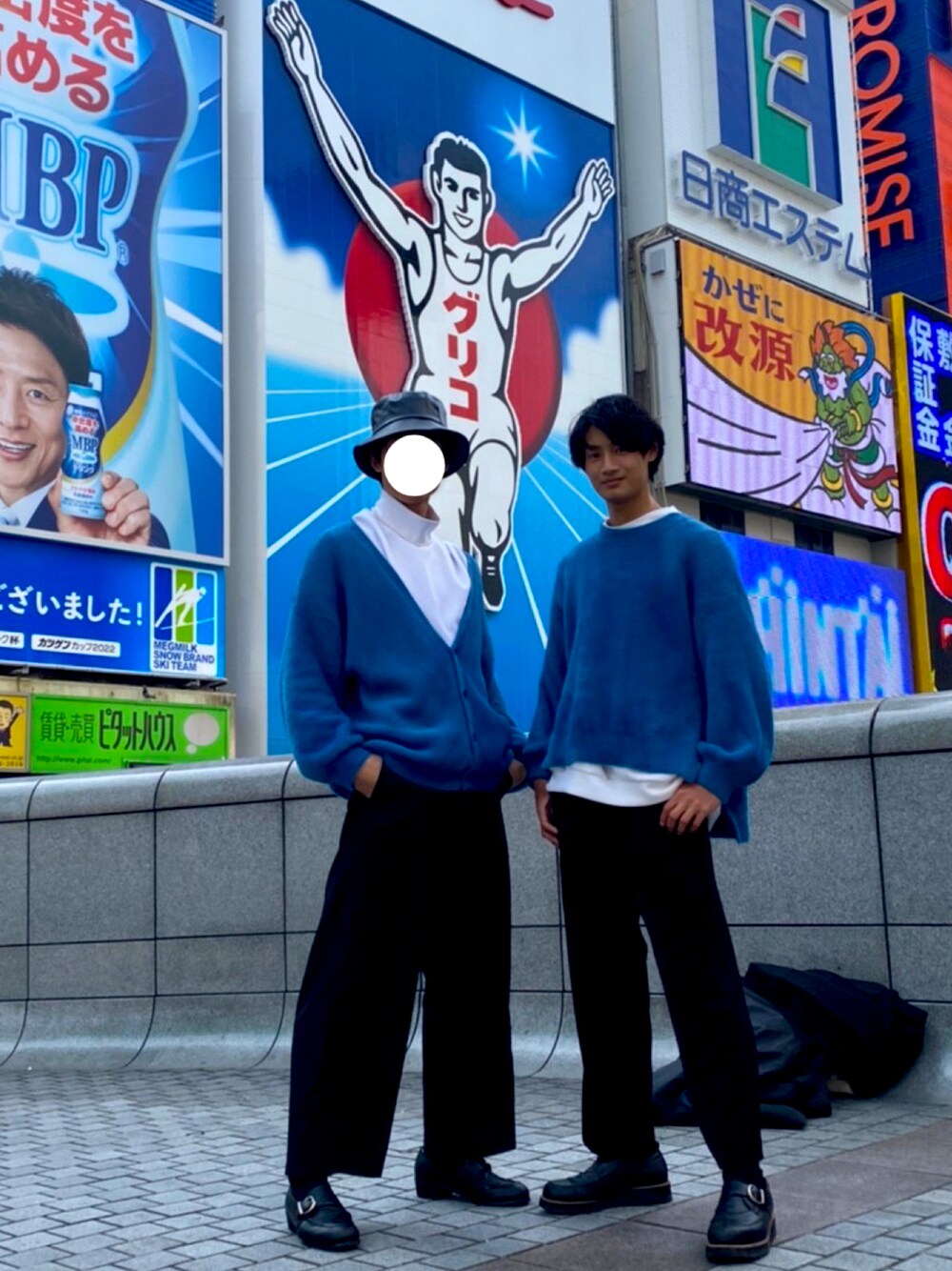 少し前の大阪旅行。 HAREのデザイン別のカーディガンを合わせたペアコーディネート。 青×白×黒は大体大正解◎!!