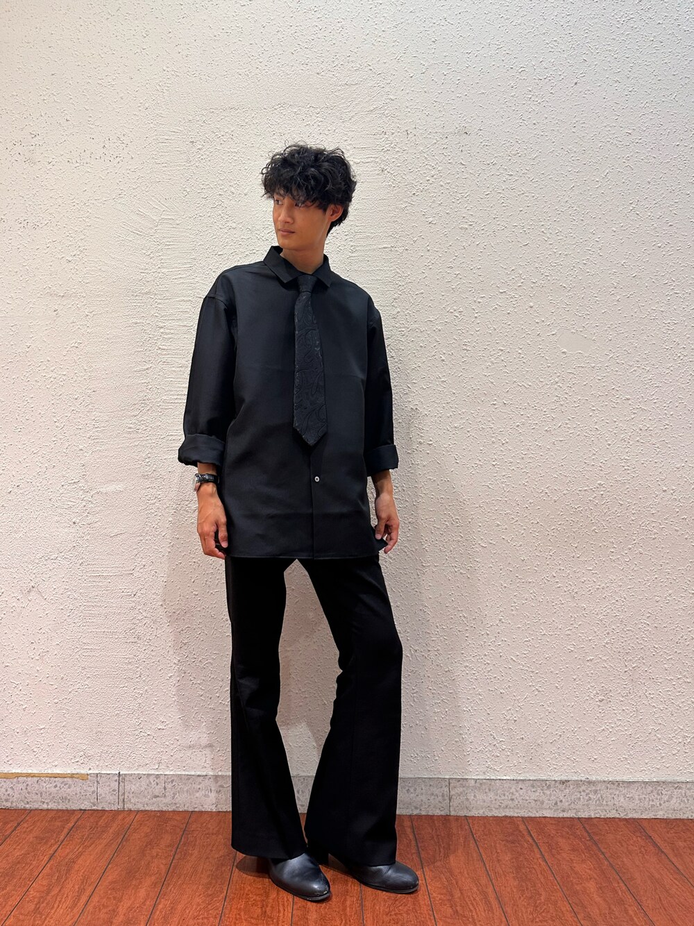 ブラックでまとめてモードコーデにしました! HAREのフレアパンツの汎用性が高いのでどのアイテムと合わせても綺麗めにまとまり、おすすめです!