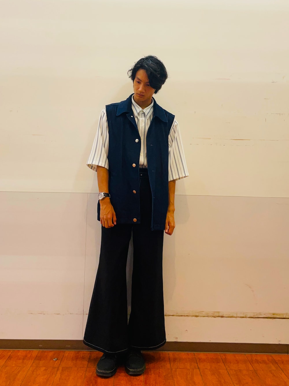 最近購入しましたデニムベストがカッコ良すぎたのでストライプと合わせてみました!