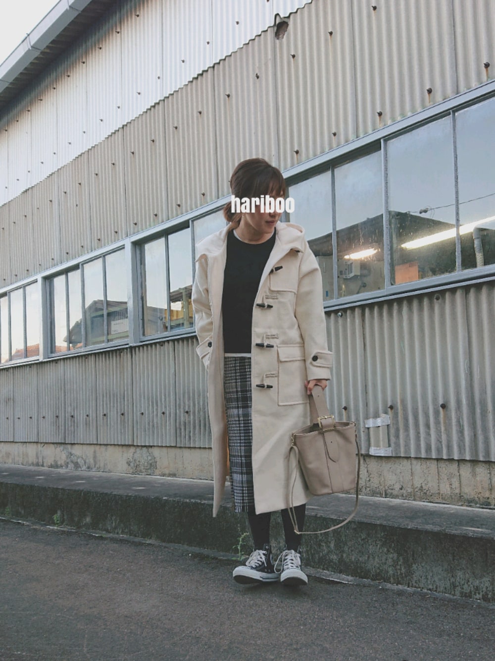いいね、save、followどれもありがとうございます🖤 『ホワイトダッフルコーデ②』 母からのおさがりダッフルはお気に入りのアウターです(^^) 今日はチェックのスカートでカジュアルコーデにしてみました!! しまむらのスカートはチェックの雰囲気が可愛い🖤 スカートの丈感も絶妙(о´∀`о)🖤