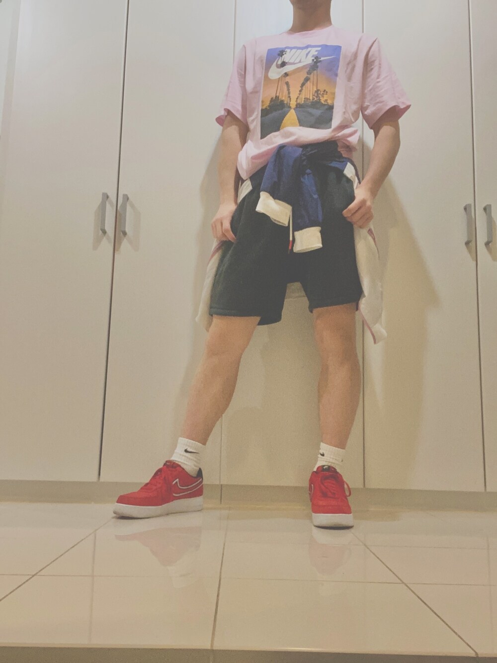 全身NIKEコーデ! (パーカーだけは分からなかった😭) このピンクのTシャツが本当に可愛い😆 やっているスポーツがバスケってこともあってパンツとスニーカーをバスケアイテムとして使いました😁