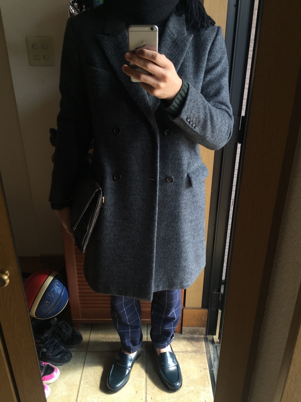 こんにちは。昨日靴を購入したのでチェスターコートで合わせてみました。パンツはGUで買いました。それにしてもめっちゃ短足ですね自分。