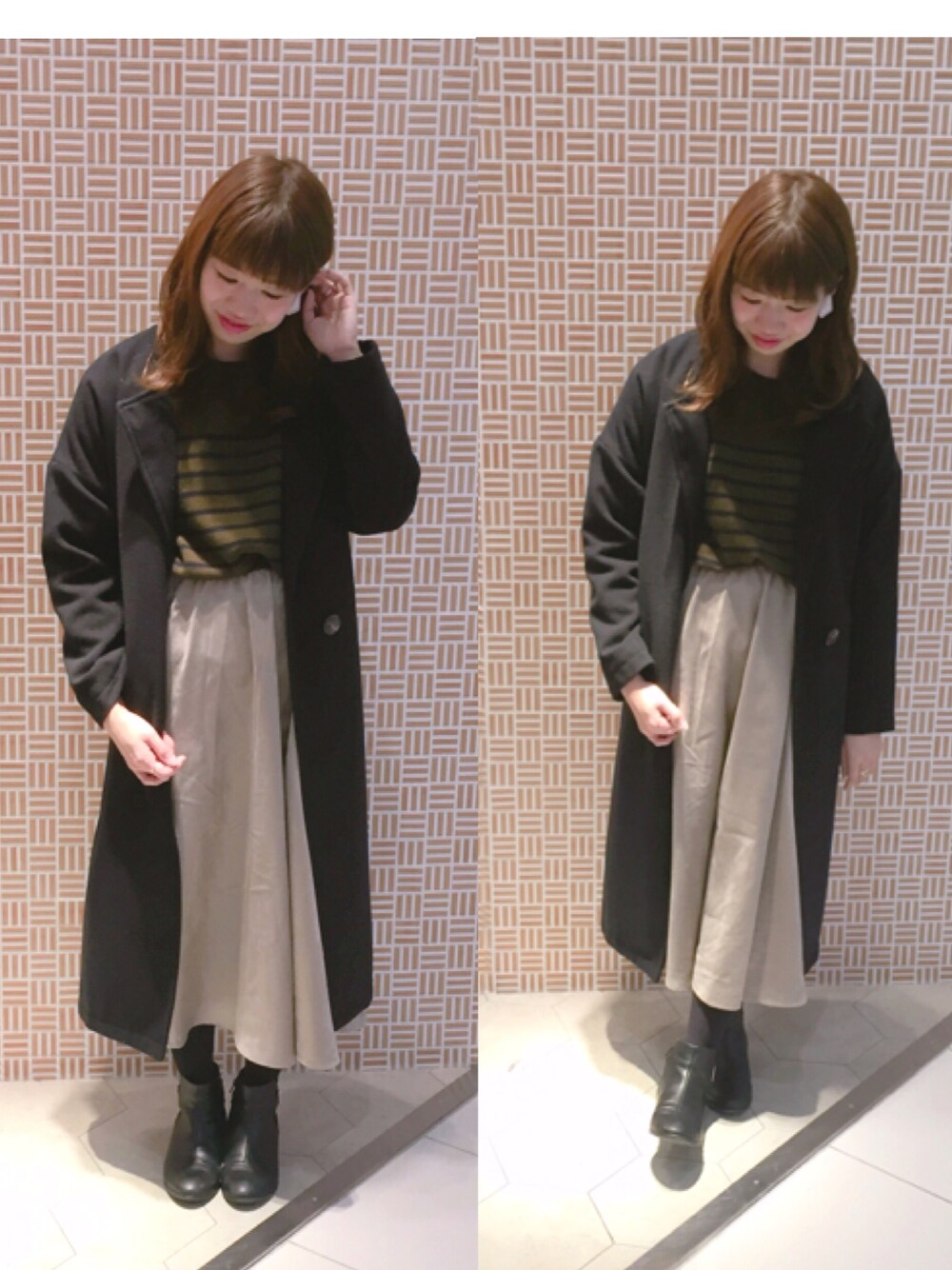 スカートとコートの長さを一緒にすると バランスよくまとまります🌰
