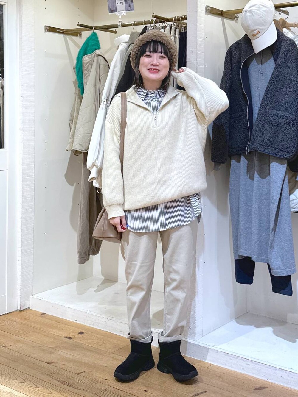 ハーフジップニットは大きめの襟が可愛い😍 ジップを広く開けることができるので首元が詰まっているのが苦手な方におすすめ! バッグシルエットは大きめの襟が可愛い〜! ジップデザインはボーイッシュになりがちですが、可愛い印象にもアレンジ可能です😍 ストレッチが効いたテーパードパンツは冬仕様の起毛素材!動きやすくてさっとコーディネートを組みやすいです👏カラーもベーシックカラーが揃っているので着回し力抜群です🥰 _______________________________________ ≪ Instagram & STAFFBOARD ≫ →STAFFBORDフォローをしていただくと .stアプリでフォロースタッフのスタイリングが いち早くチェックできます♡ → こちらもフォローお待ちしております♡ リール動画やコーデまとめなど更新中! メッセージもお気軽にどうぞ♡ 最後までお読みいただきありがとうございます♪