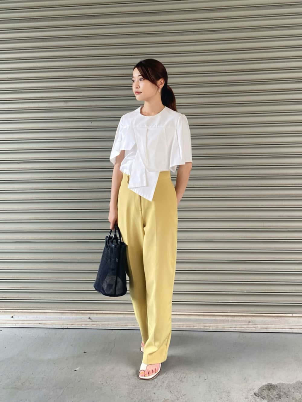 変型の白Tにはカラーパンツでシンプルすぎないコーデに🧡💛