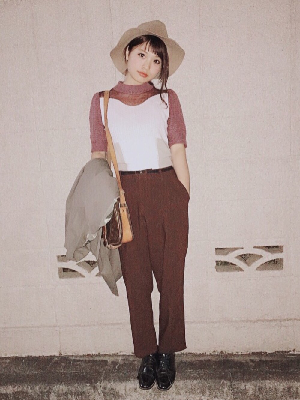 茶色とピンクで秋っぽいコーデ🙈🍁 同じトップスを持ってる友達が 舞台でこれを着るって言ってたから、 わざと合わせていったら その子が本番で前と後を逆に着ちゃっていて 大爆笑。笑 楽しい千秋楽でした😹w w 今度同じ格好でデートする予定💋💋💋笑
