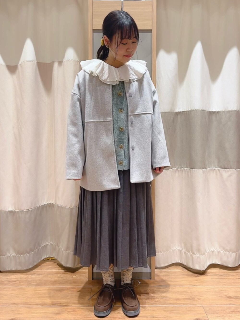 ご覧いただきありがとうございます🧸 ラッフル襟が立体感を出してくれてカーディガンやキャミOP、ノーカラーのアウターとも相性⚪︎です! ぜひお近くの店舗でご覧ください🌼