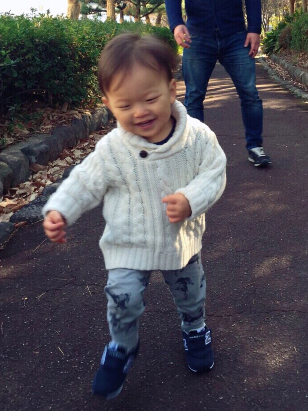 パパと散歩◎歩くだけで楽しそー♡笑 靴はニューバランスでパパとおそろい