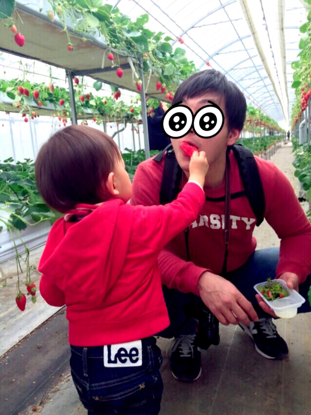 イチゴ狩り。パパにあーん♡