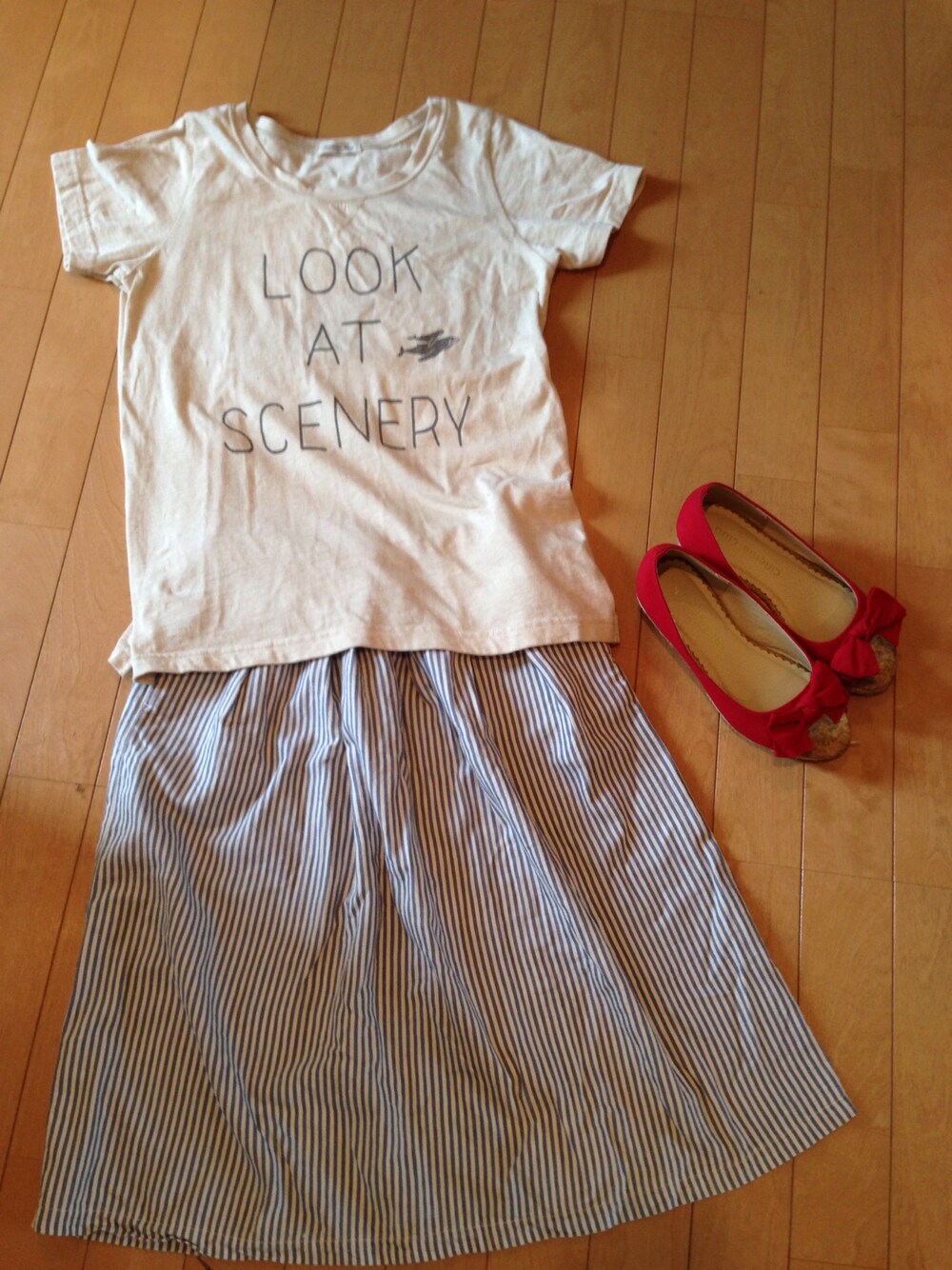 Tシャツよれよれでうつっちゃった(°_°)アイロンかけよー ロッキンまであと少し! どんなコーデで行こうかな〜(´-`).。oO(♡