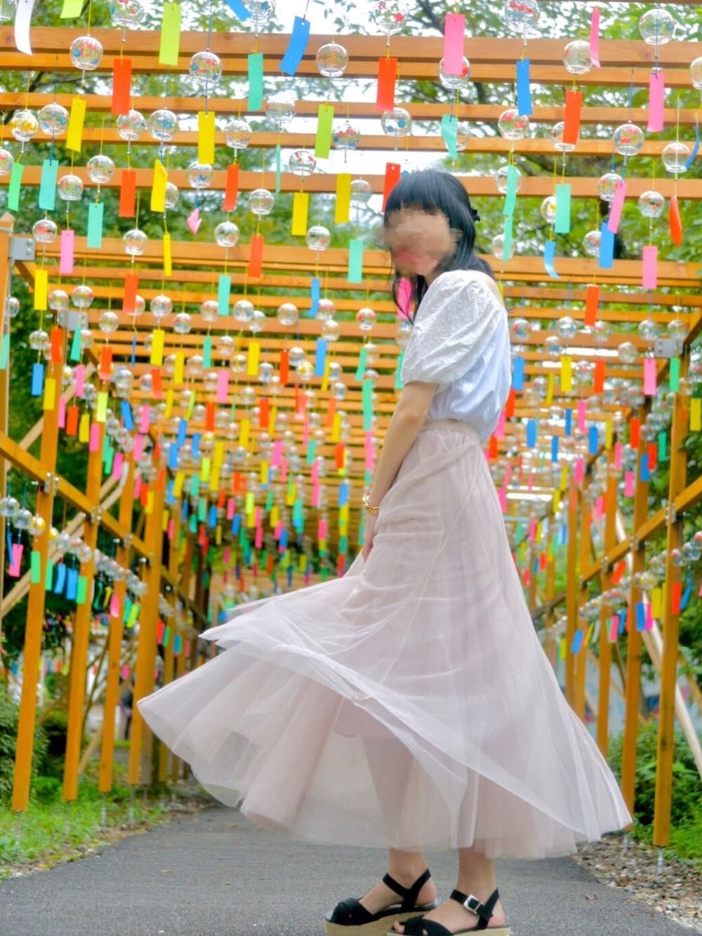 友達と写活してた時のコーデ📷 歩く度スカートがふんわりなってめっちゃかわいいです。😻