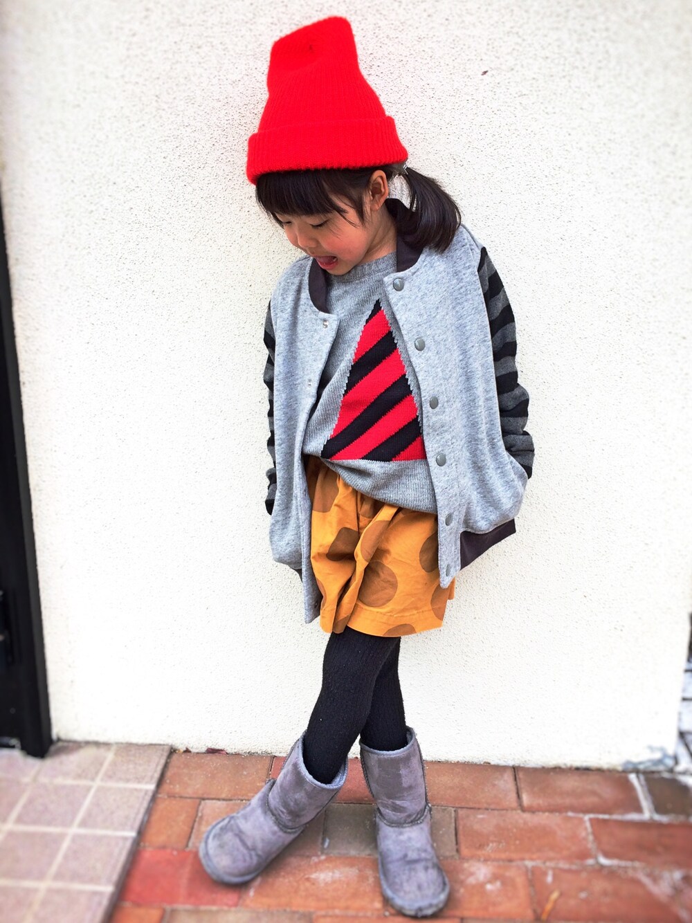 ボーダーの切り替えが可愛い スウェットスタジャン(´ω`★) 120サイズはおっきいな…(-。-; この時期SALEで大きめ買うから、 なかなかジャストサイズが難しい〜。