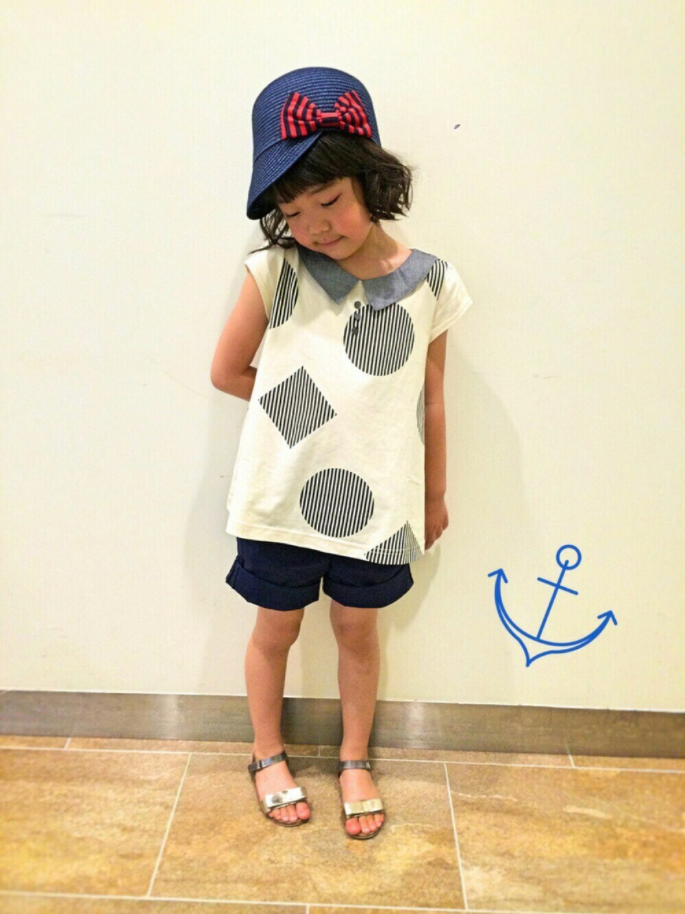 ペーパーリボンキャップ⚓ バイアスドットプリントチュニック⚓ チノショーツ⚓ 早く梅雨明けないかな〜(๑ˇεˇ๑)•*¨*•.¸¸♪ いつもありがとうございます☆
