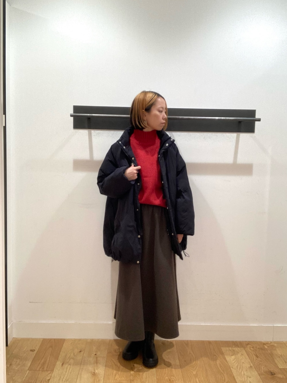 SORONAスタンドカラーブルゾンは 中綿ながらとても暖かく軽量なのが おすすめポイントです♪ 赤ニットはホリデー感が出て 着るだけで気分が上がりますね◎