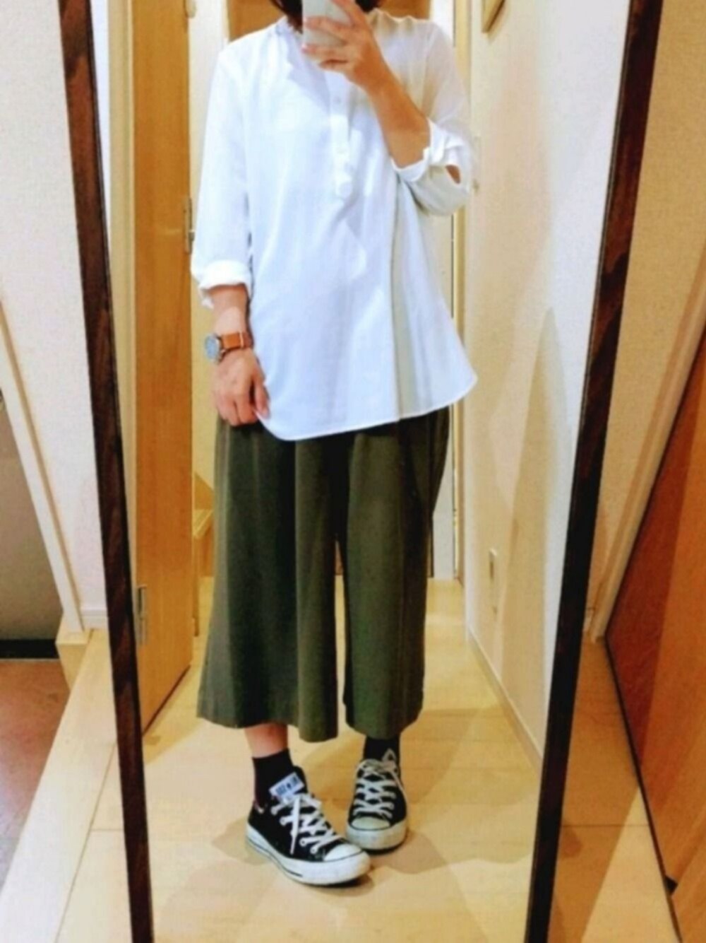UNIQLOのドレープシリーズはシワになりにくくて着やすいのでUNIQLOに行くとつい欲しくなってしまいますがセールまで我慢😑 靴下は紫なんですが黒にしか見えないですね💦